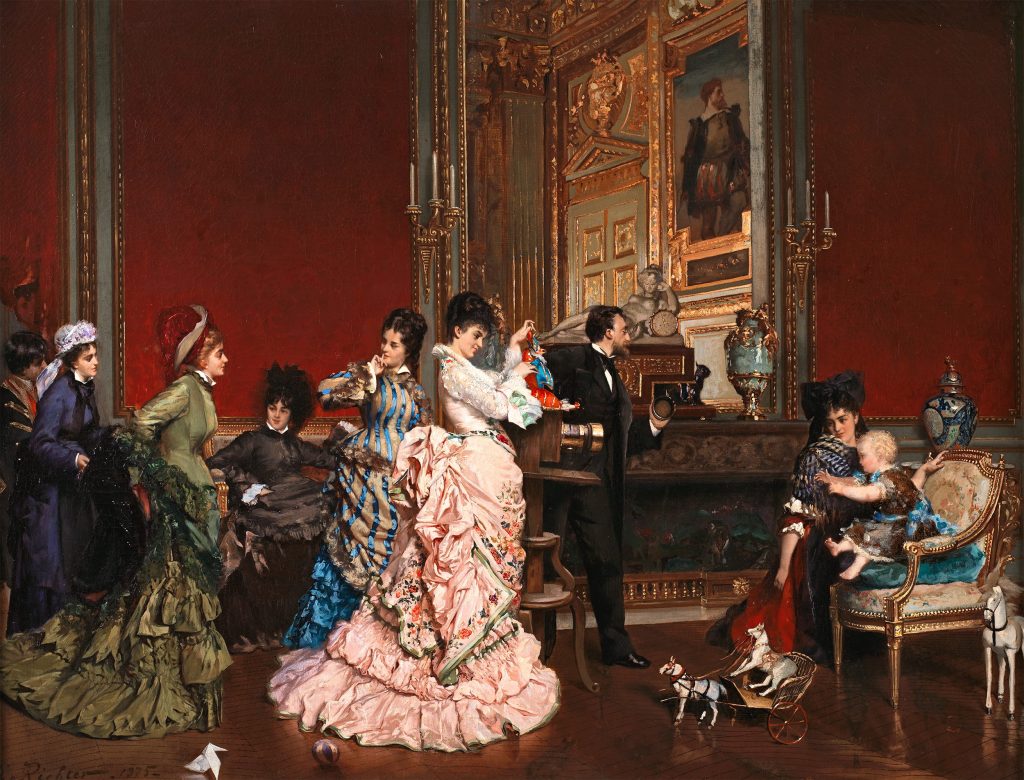 Serginin “Mahremiyette” bölümü korse ve iç giyimin kadının sosyal duruşundaki gizli mimarisini anlatırken; “Günün Alanlarına Göre Giyinmek” ve “Akşam Parıltısı” bölümleri, dönemin katı görgü kurallarını ve zarafet yarışını kostümler ve resimler üzerinden konuşturuyor.